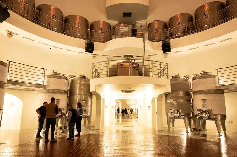 Palmaz Vineyards’ winemaking takes place in a series of four caves oriented vertically to enable winemaking in the most gentle method possible. The height of the wine cave is equivalent to a 22-story building, providing the vertical range needed for true gravity-finished winemaking. This unique vertical setup allows the grapes, must, and wine to be gently moved without the violent agitation of pumping, which can change the wine’s expression and texture. This gentle treatment allows the finest nuances of flavor and mouthfeel to develop naturally — the result is a powerful and concentrated yet elegant wine with a cashmere-like texture.